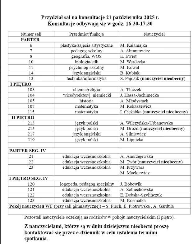 Terminarz zebrań i konsultacji